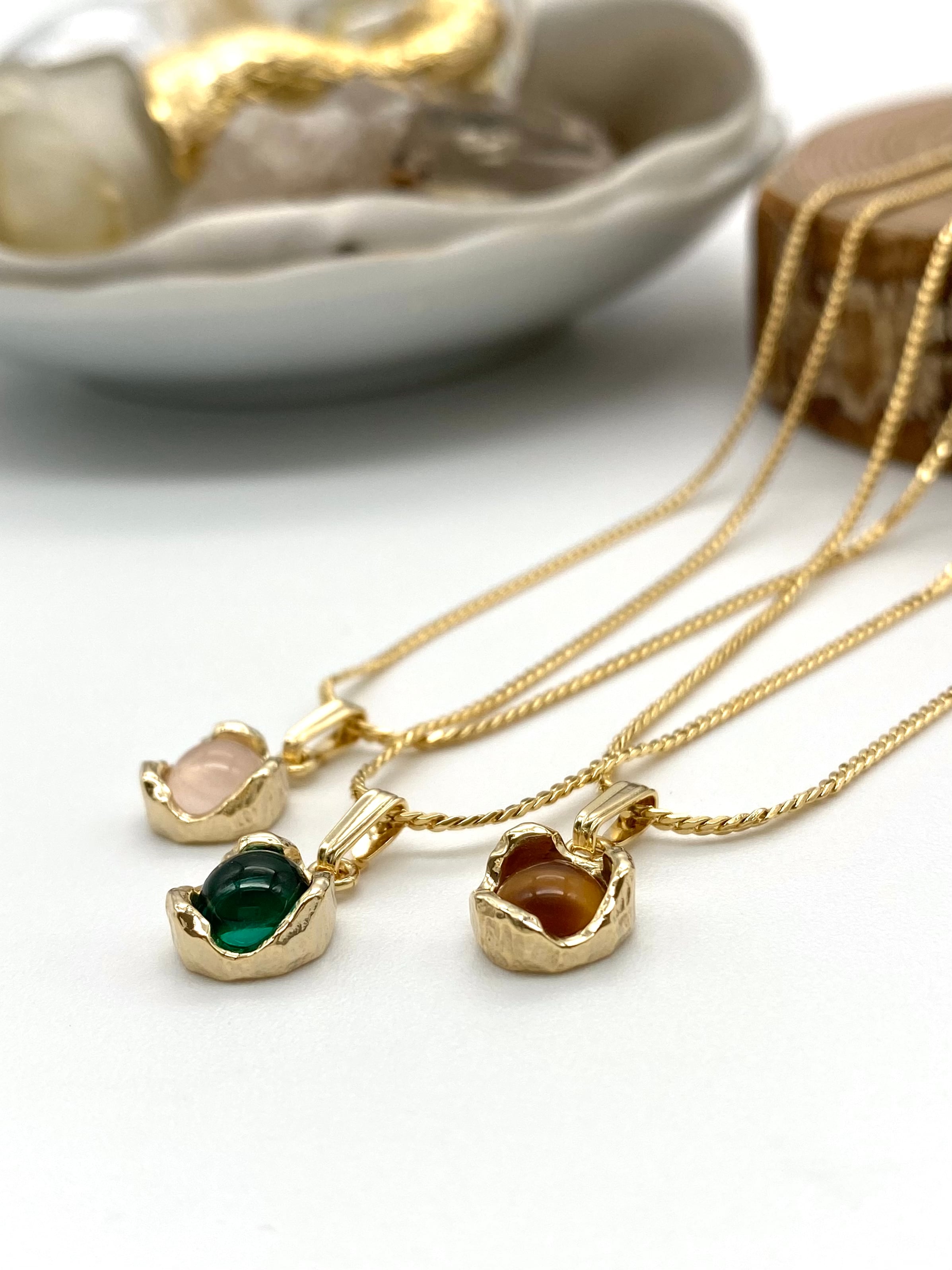一粒ずつ異なる表情をもつヴィンテージカボションを、あなただけの "原石" に見立てて仕立てたネックレスです。