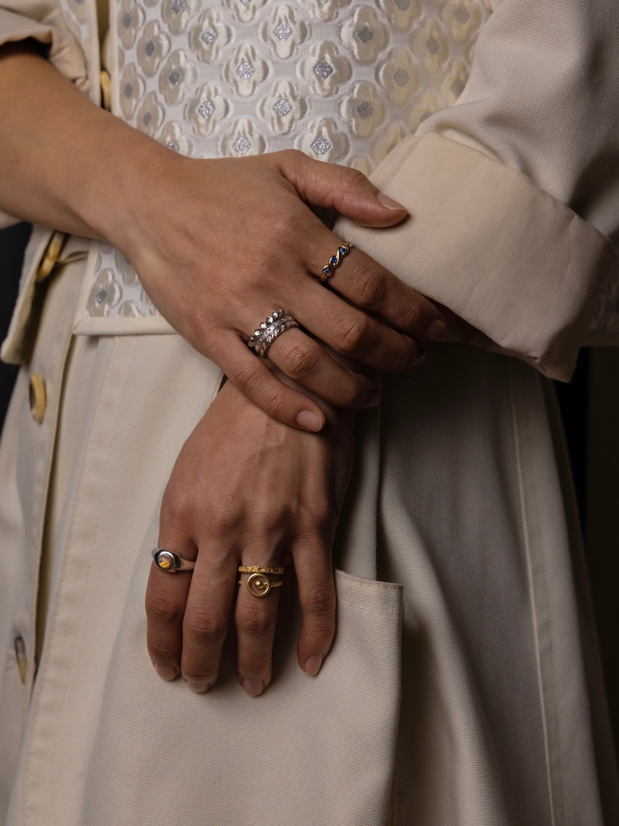 A comet crosses the sky—this ring holds fleeting inspirations and moments of now.