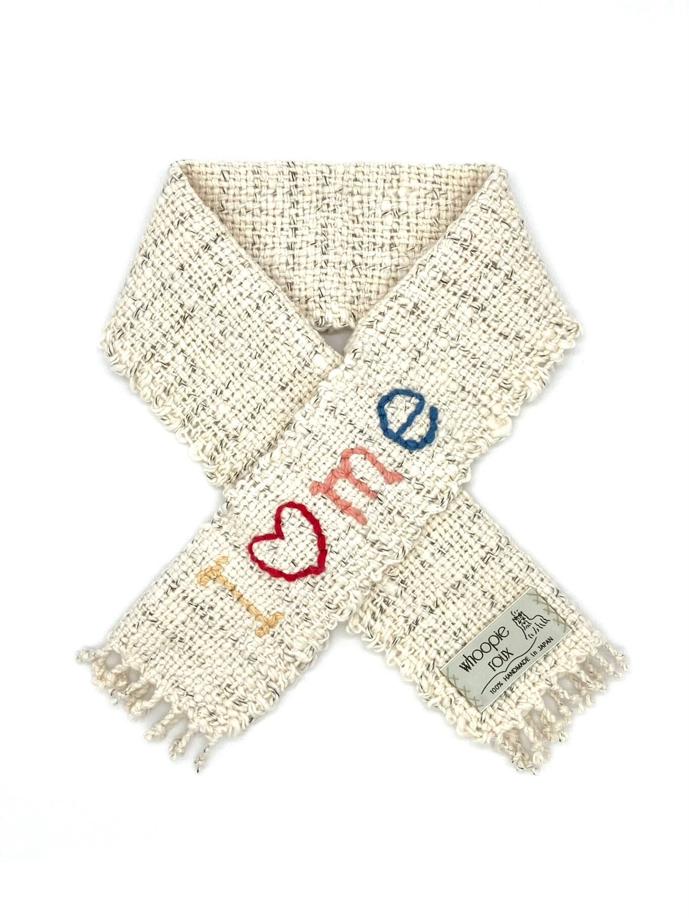 ◯着用は、幅を半分に折って首に掛け、片側のスリットにもう片側を通すだけで 形が整います。