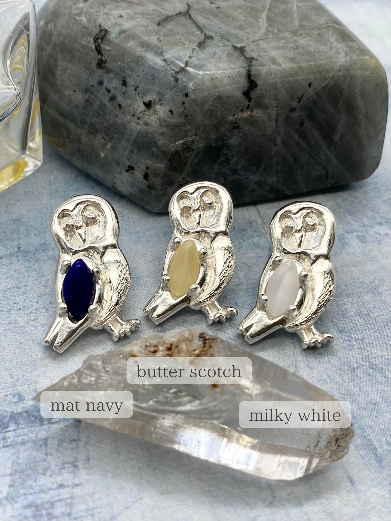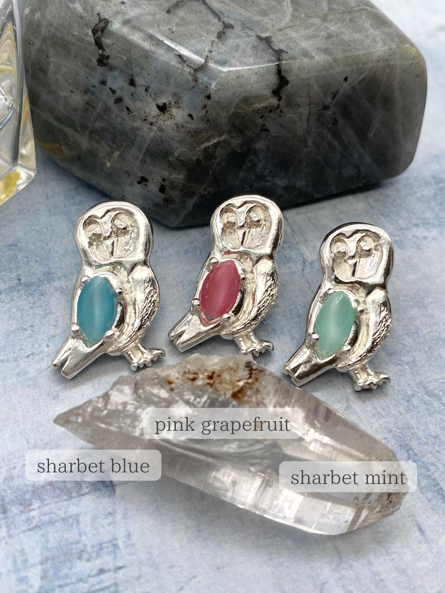 ※ "bubble blue" が、ストーンをセットした仕上がりイメージです。(他は仮置きして撮影しております)