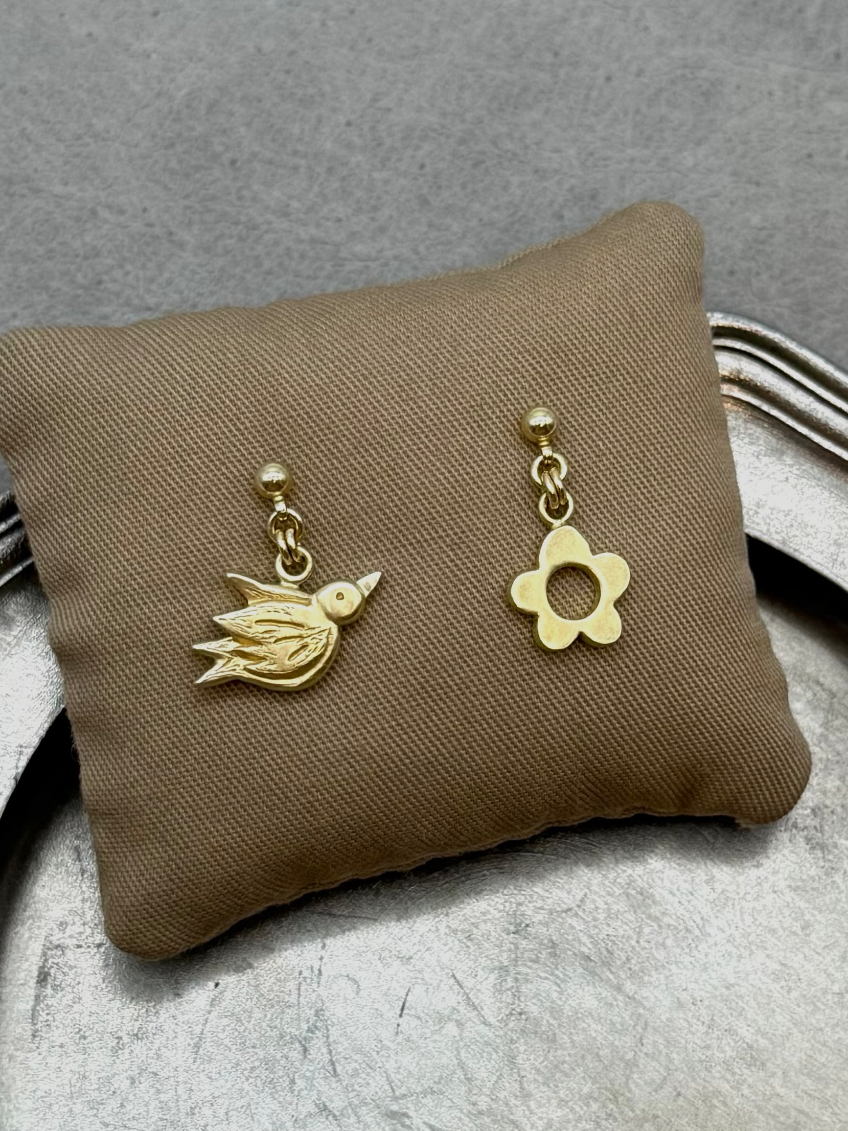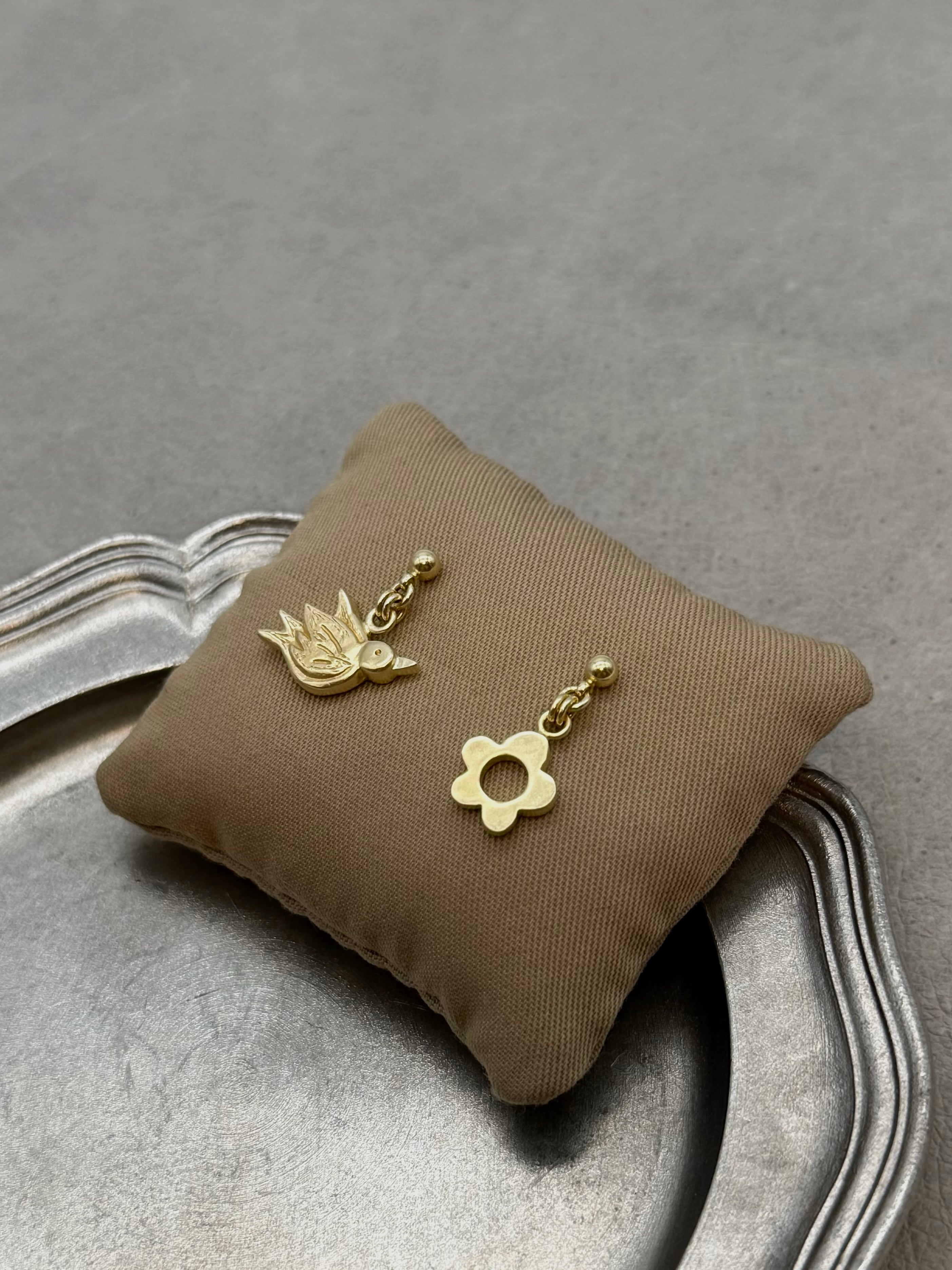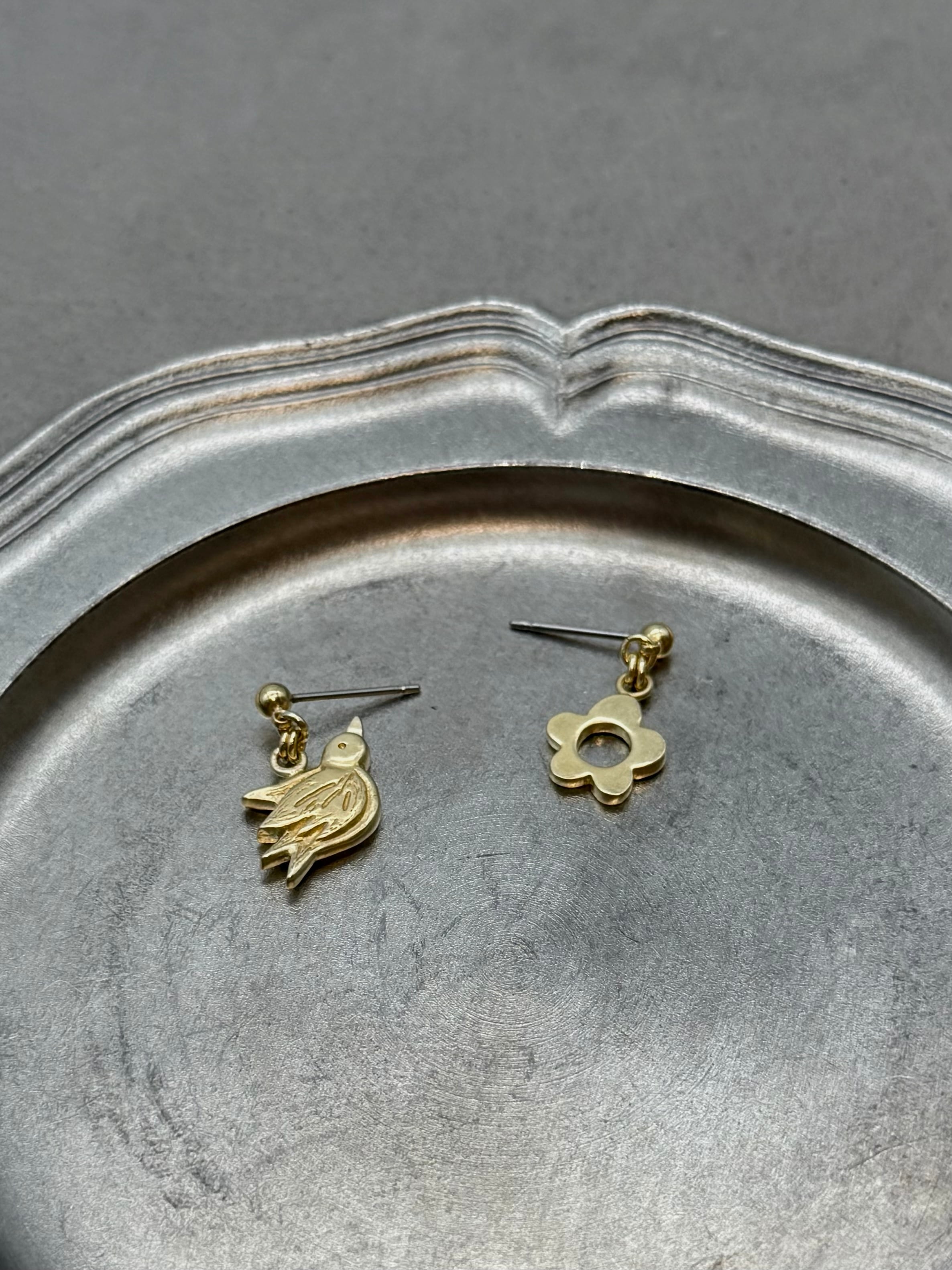 2つの異なるモチーフがやさしく揺れる、耳元からしあわせがはじまりそうな耳飾りです。
