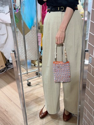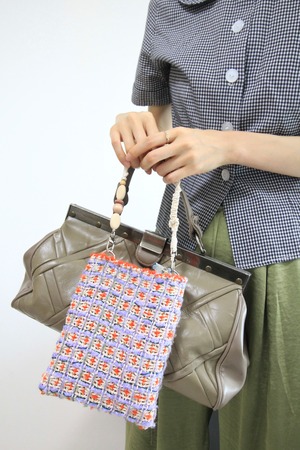 こちらの " p o c k e t " には、コットン混の芭蕉糸をメインに使用することで、強度としっとりした手触りを織り込みました。(フランスビンテージのレースを、タグに見立てています)