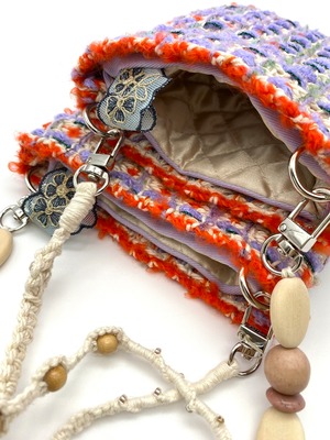 Each handwoven tweed piece is a whoopie roux original, intricate yet delicate with a touch of cuteness, created from carefully selected leftover yarns from apparel factories—some of which were originally used by high-end brands. (Even the enchanting sparkling metallic threads are soft and gentle to the touch.)