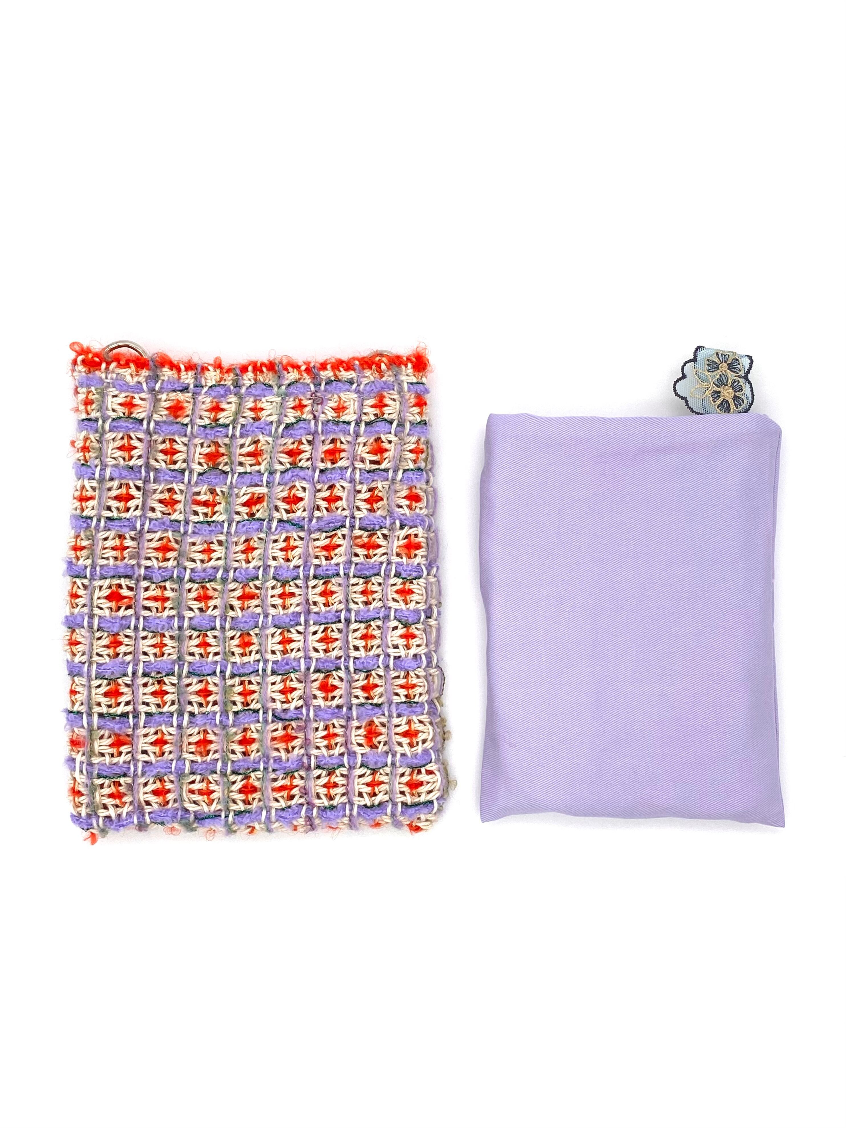 For the pocket, a cotton-blend basho yarn is woven in, lending both strength and a softly grounded feel. A piece of French vintage lace is used as a tag, adding a quiet accent.
