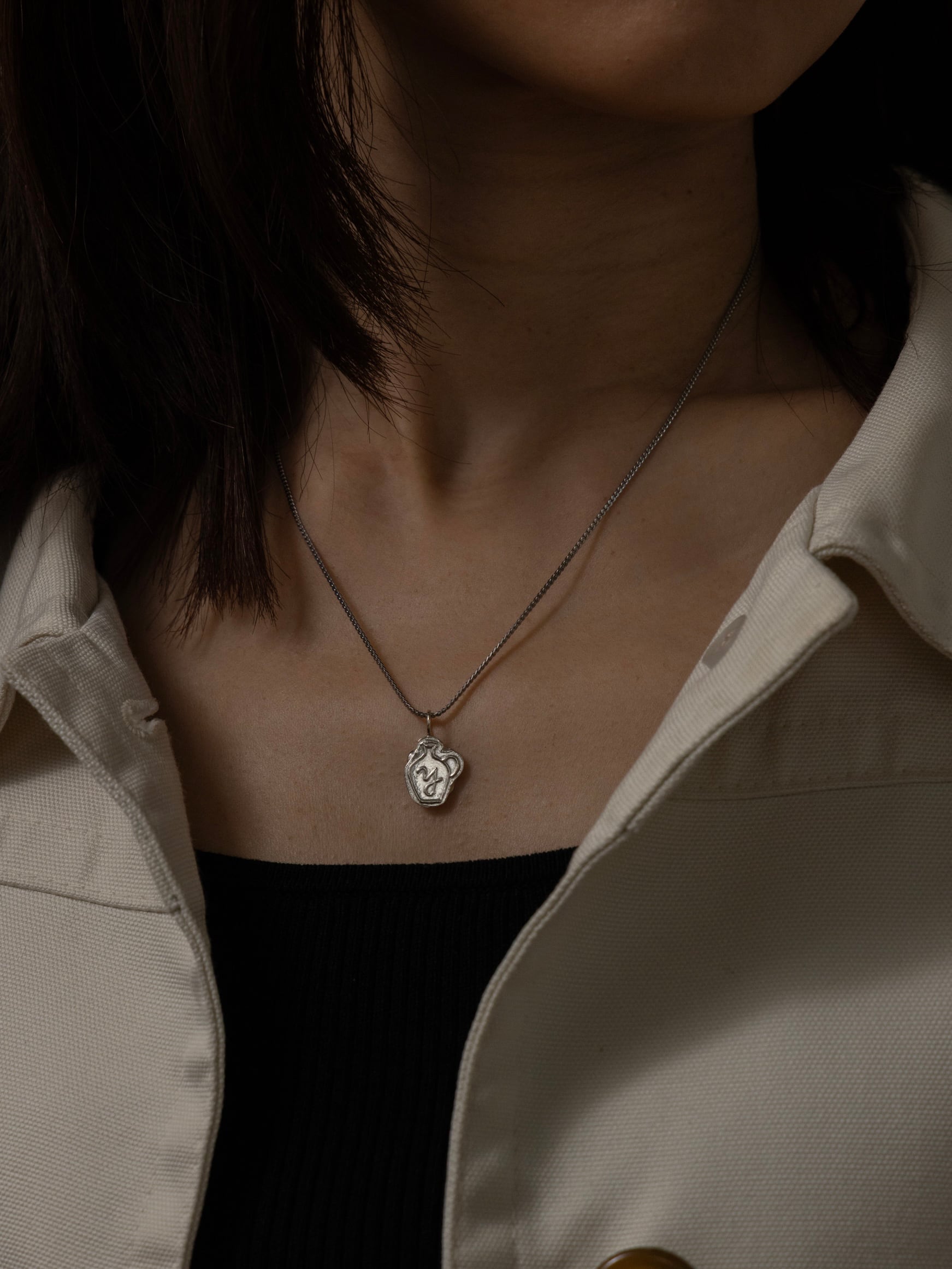 Shaped by hand from an original, hand-drawn design,the motif bears the presence of something unearthed— no two pieces share the same expression.