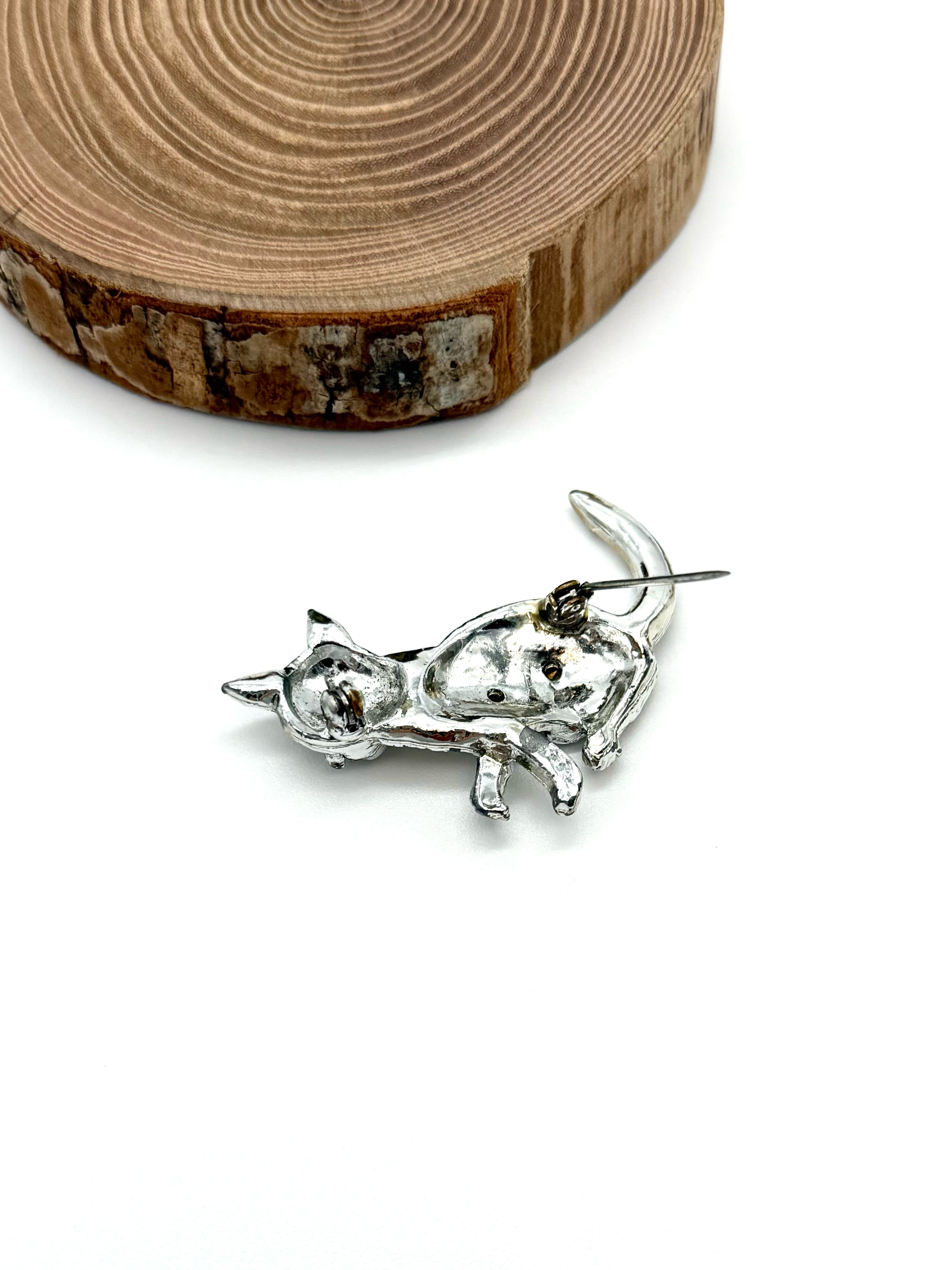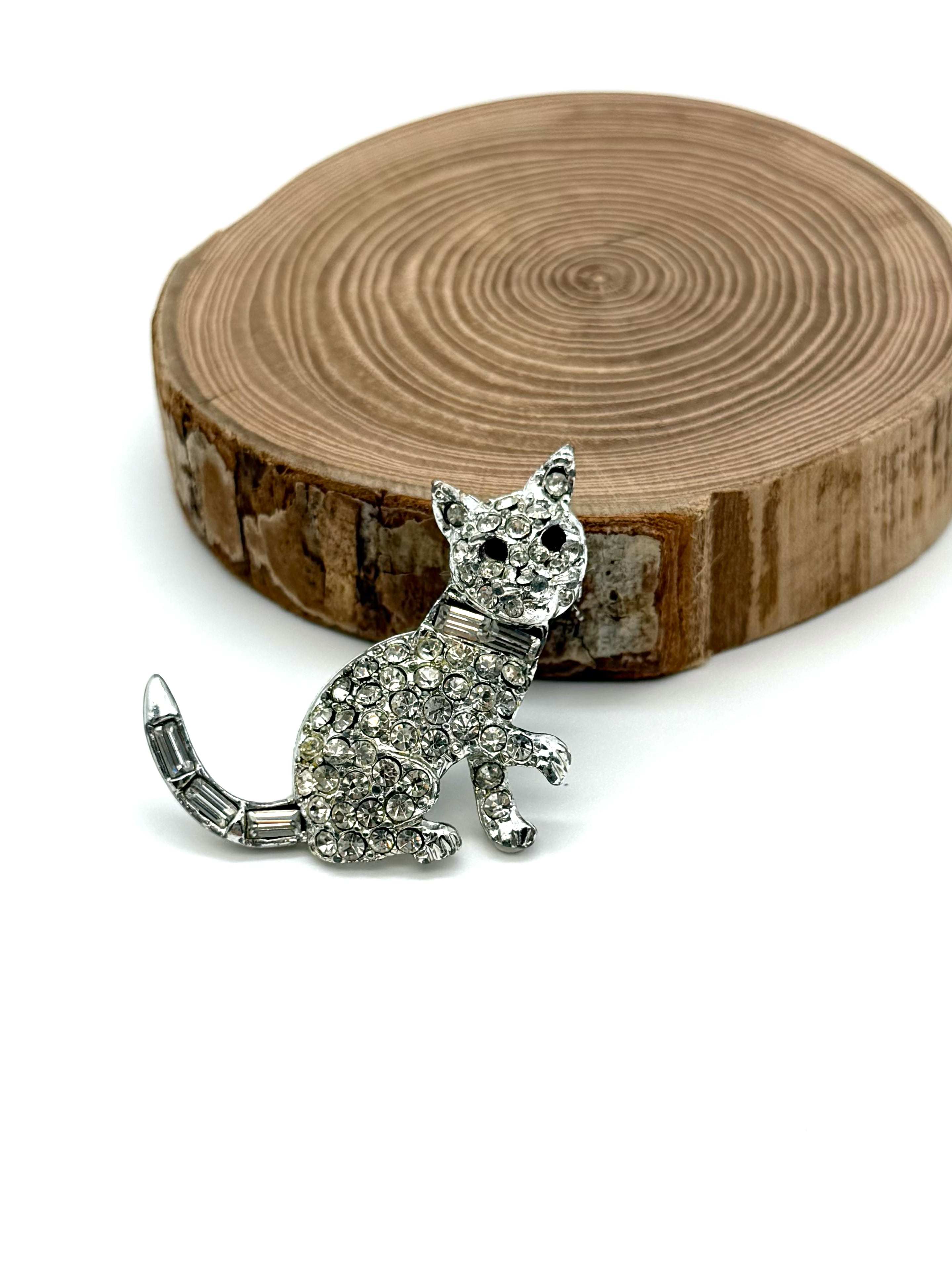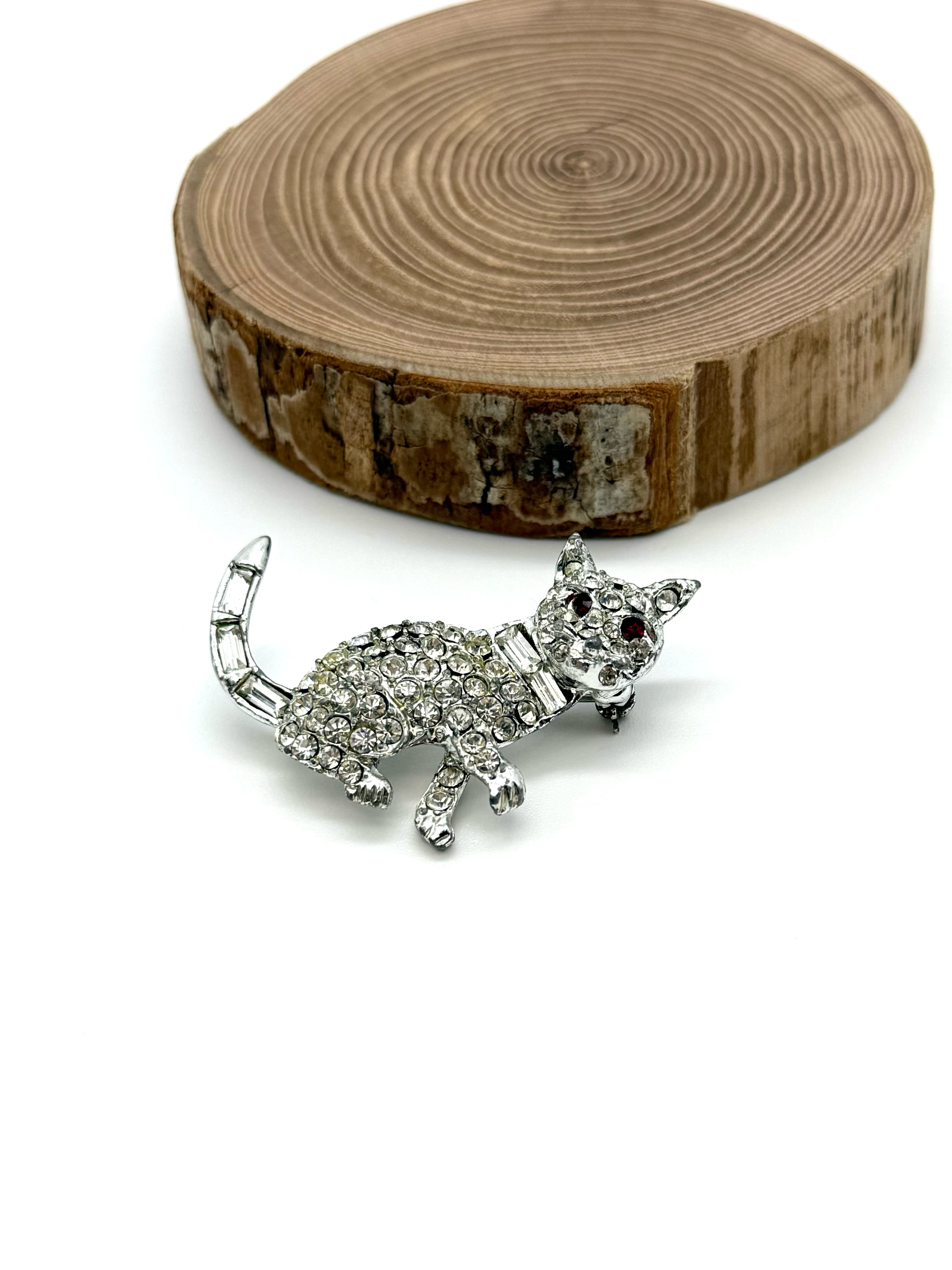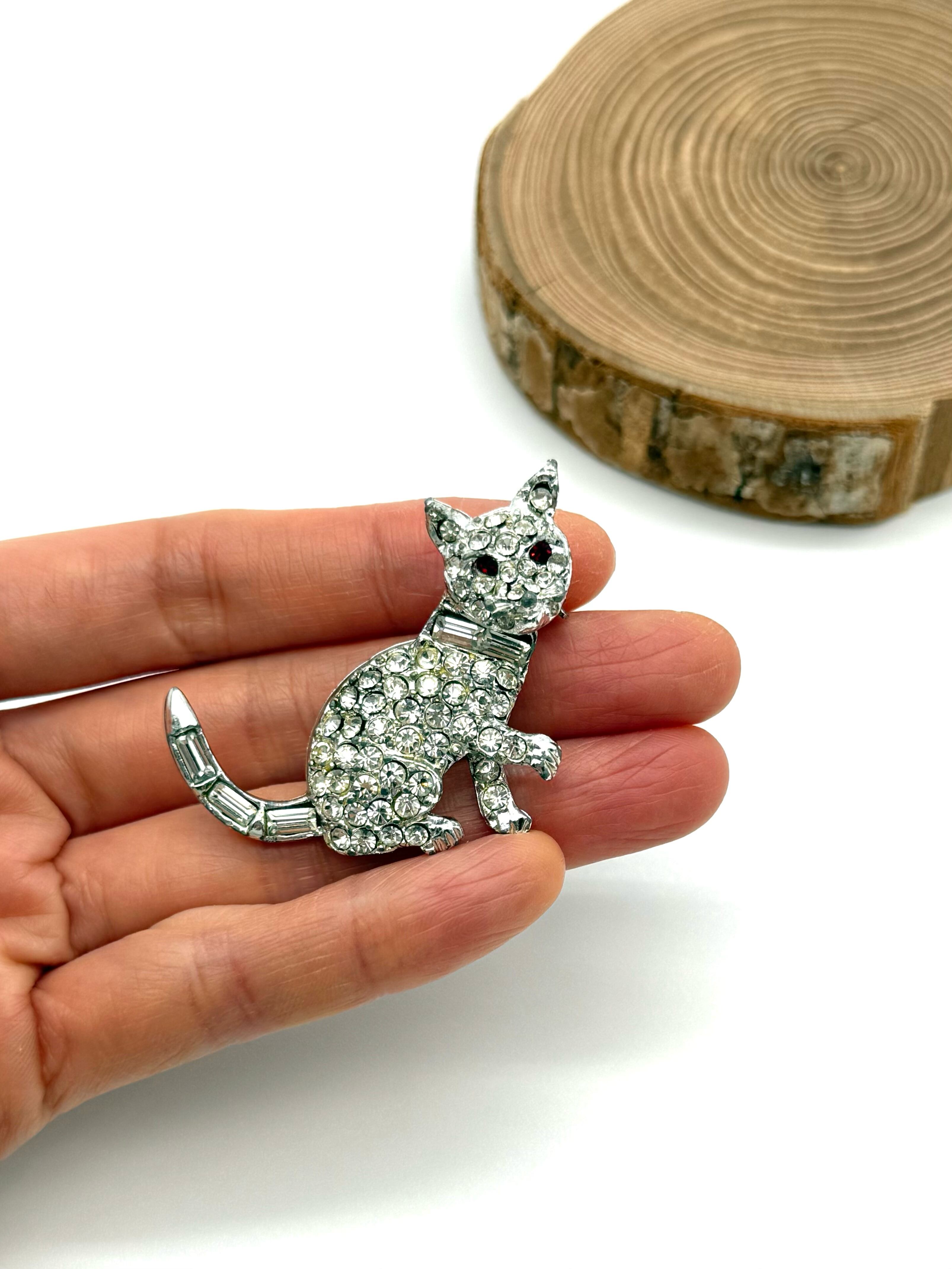 きらきらラインストーンの、猫モチーフのヴィンテージブローチ。