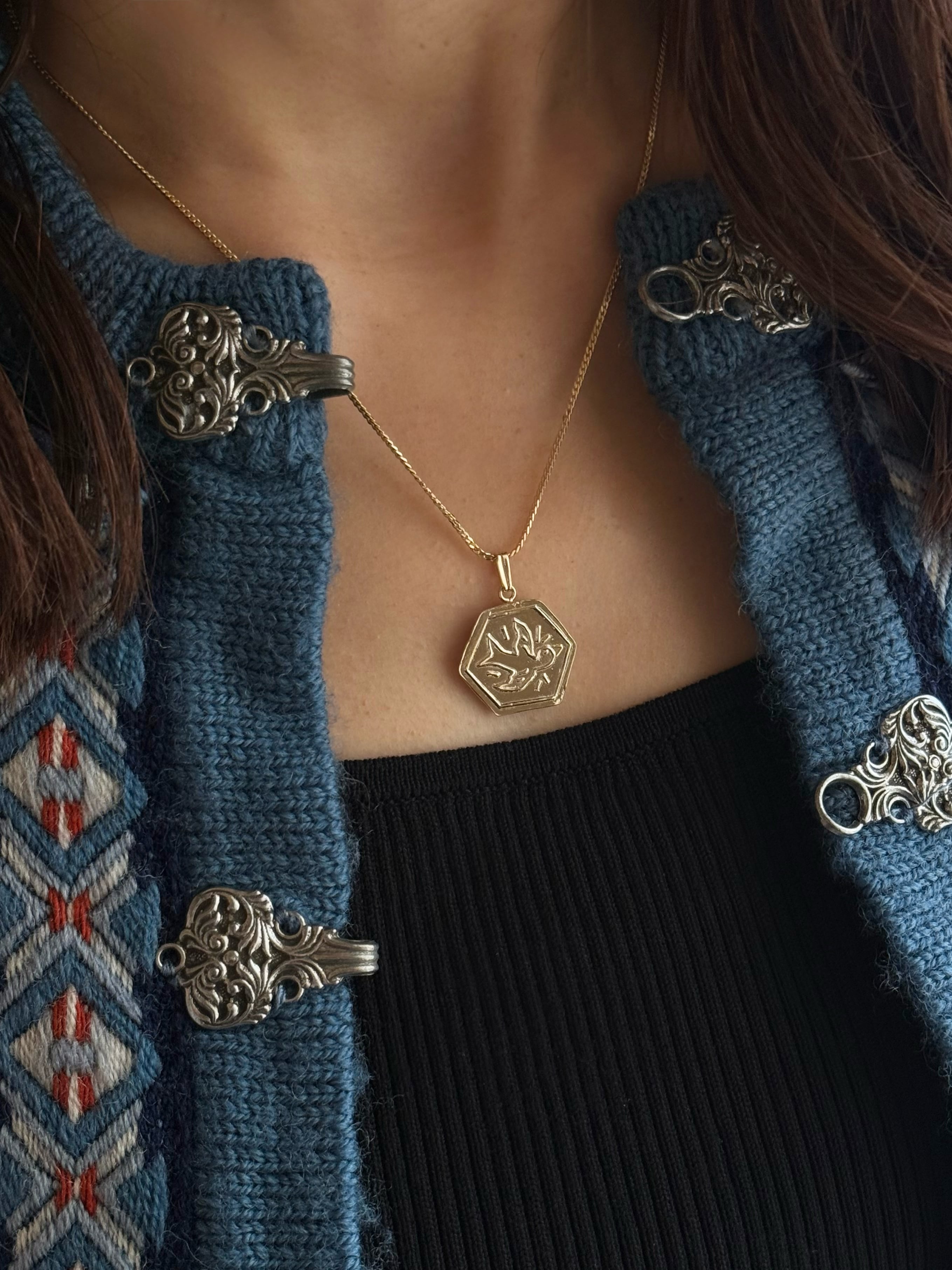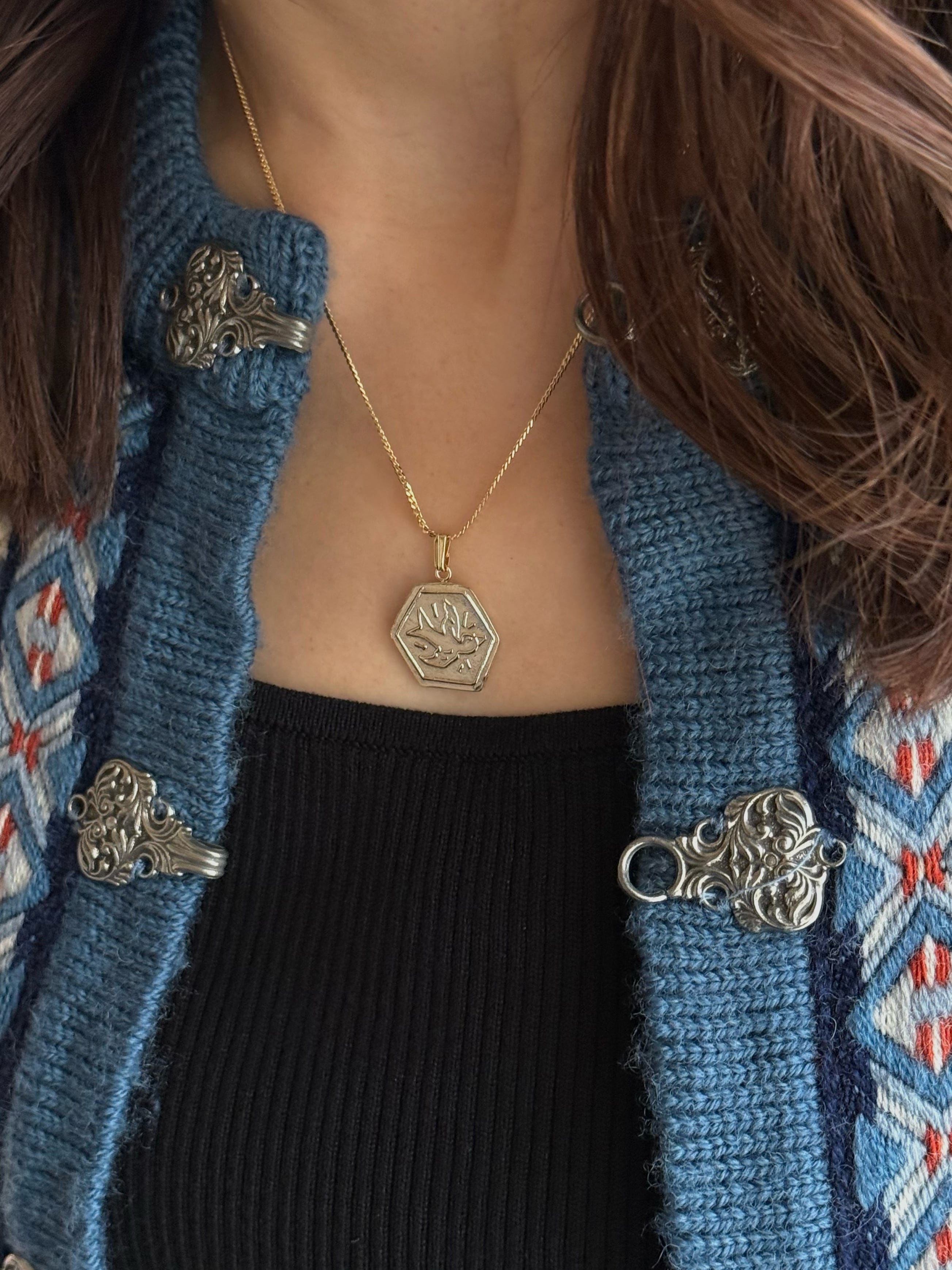 Hand-finished, carrying a texture reminiscent of vintage coin jewelry.