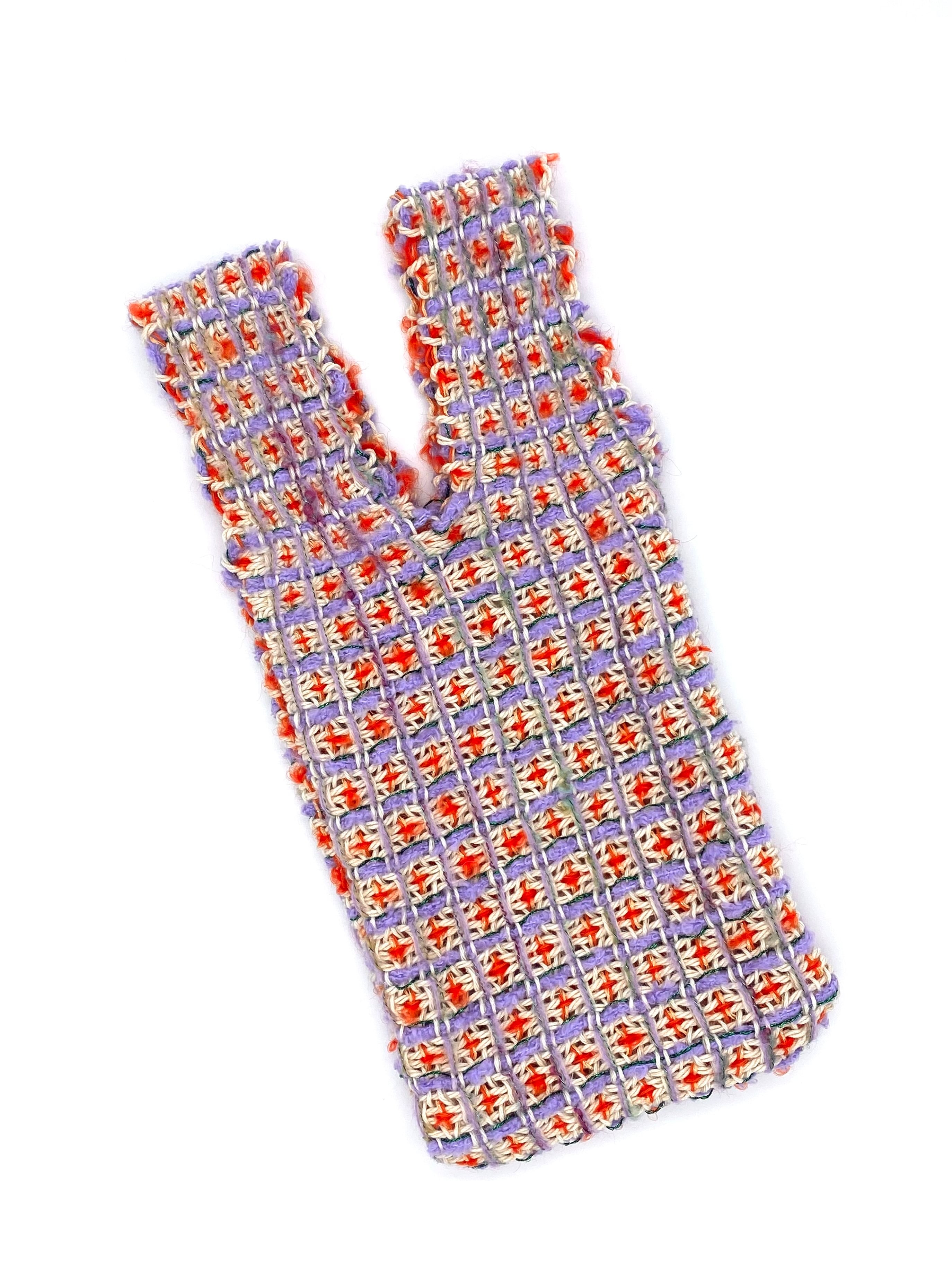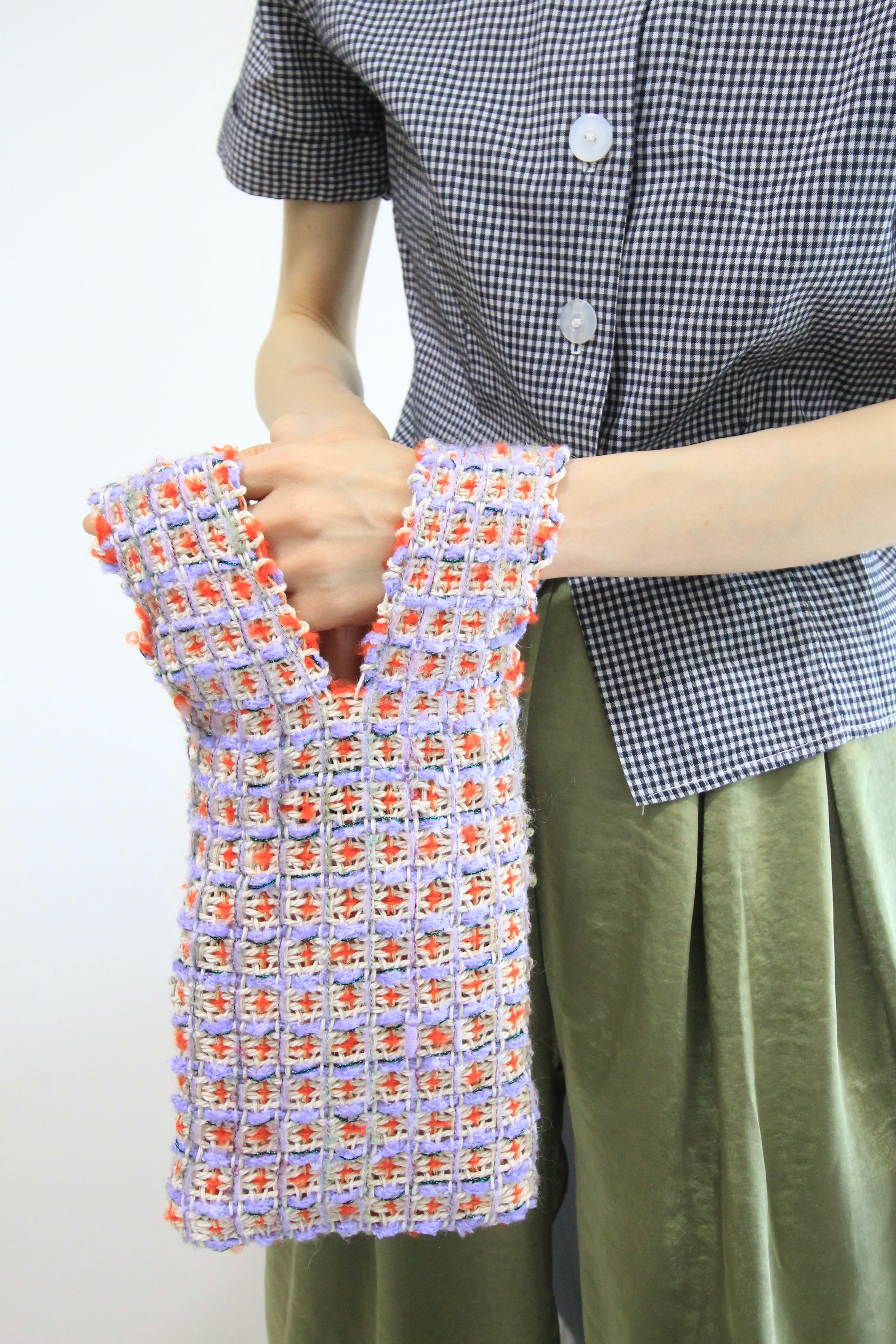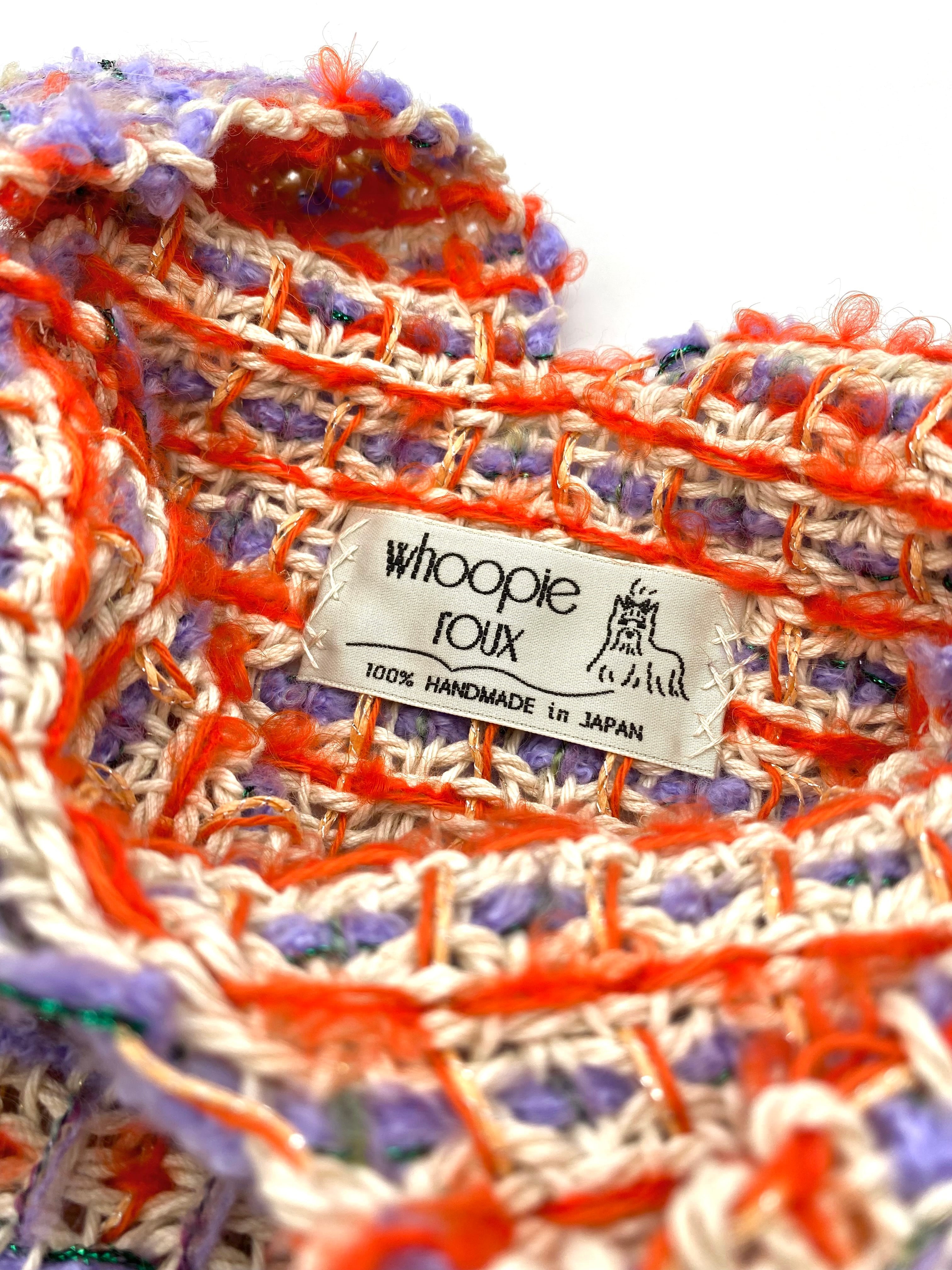 Each handwoven tweed piece is a whoopie roux original, intricate yet delicate with a touch of cuteness, created from carefully selected leftover yarns from apparel factories—some of which were originally used by high-end brands. (Even the enchanting sparkling metallic threads are soft and gentle to the touch.)