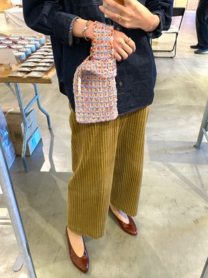 憧れのツイードは、すべて手織り。色の配置やバランスを研究してデザインした、完全オリジナルです。また、制作にあたり whoopie roux では「アパレル生産後に廃棄されてしまう、うつくしい残り糸」を買い取っています(中には、高級アパレルで使用されたものも)。