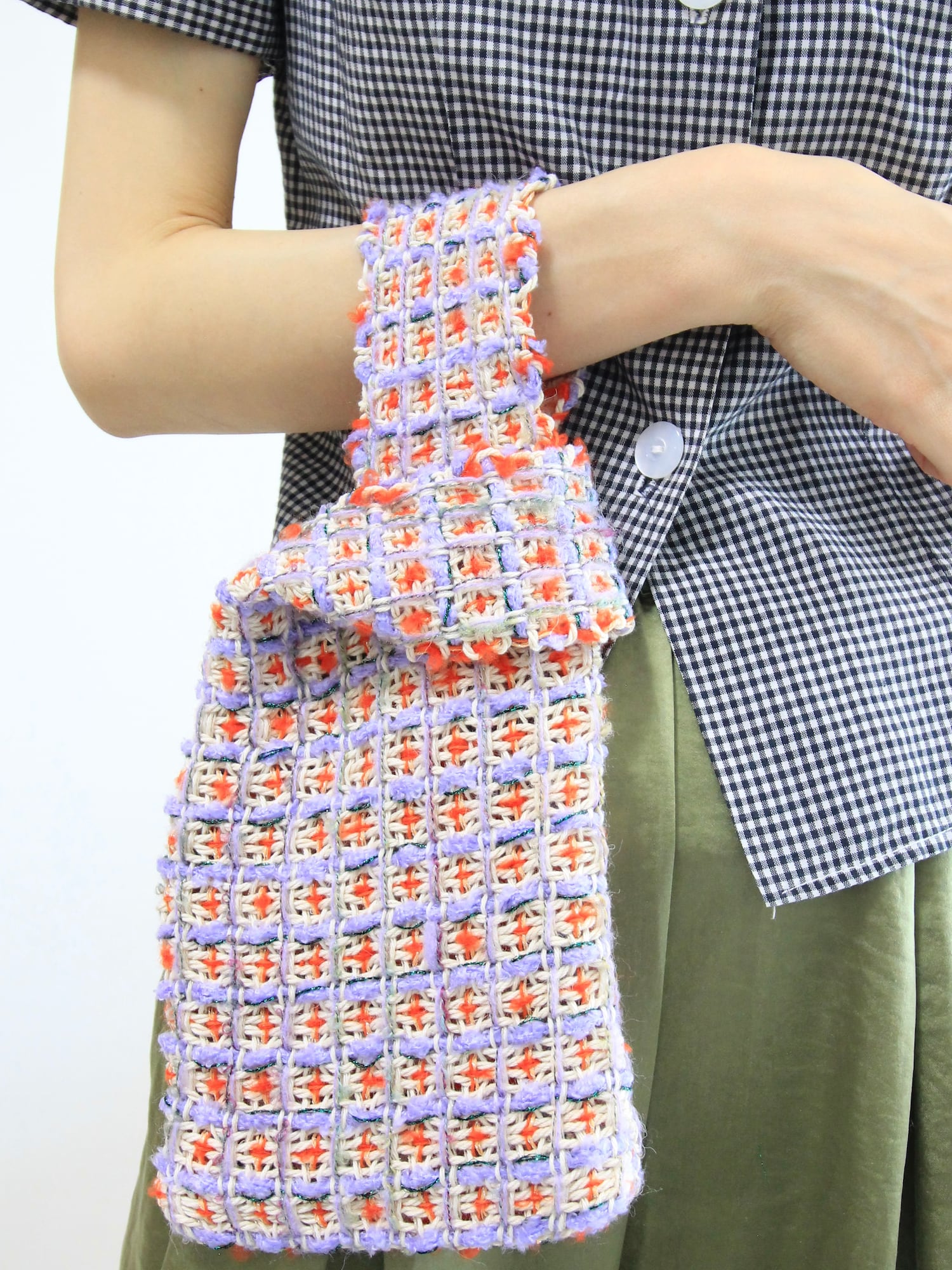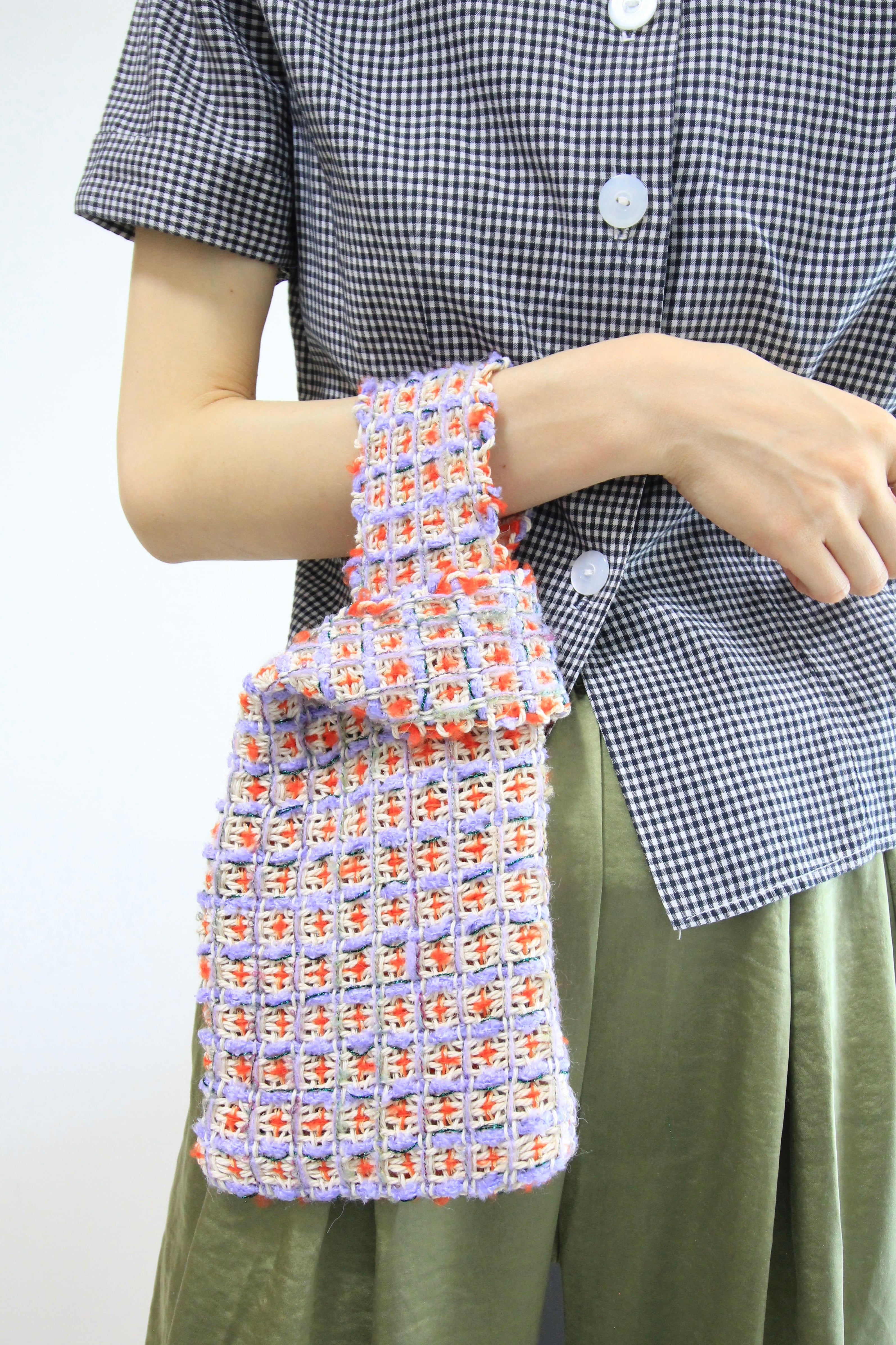 For the purse, a cotton-blend basho yarn is woven in, lending both strength and a softly grounded feel. It can be carried as a one-handle bag, or styled with a carabiner ring and shoulder strap for different ways of wearing ✧