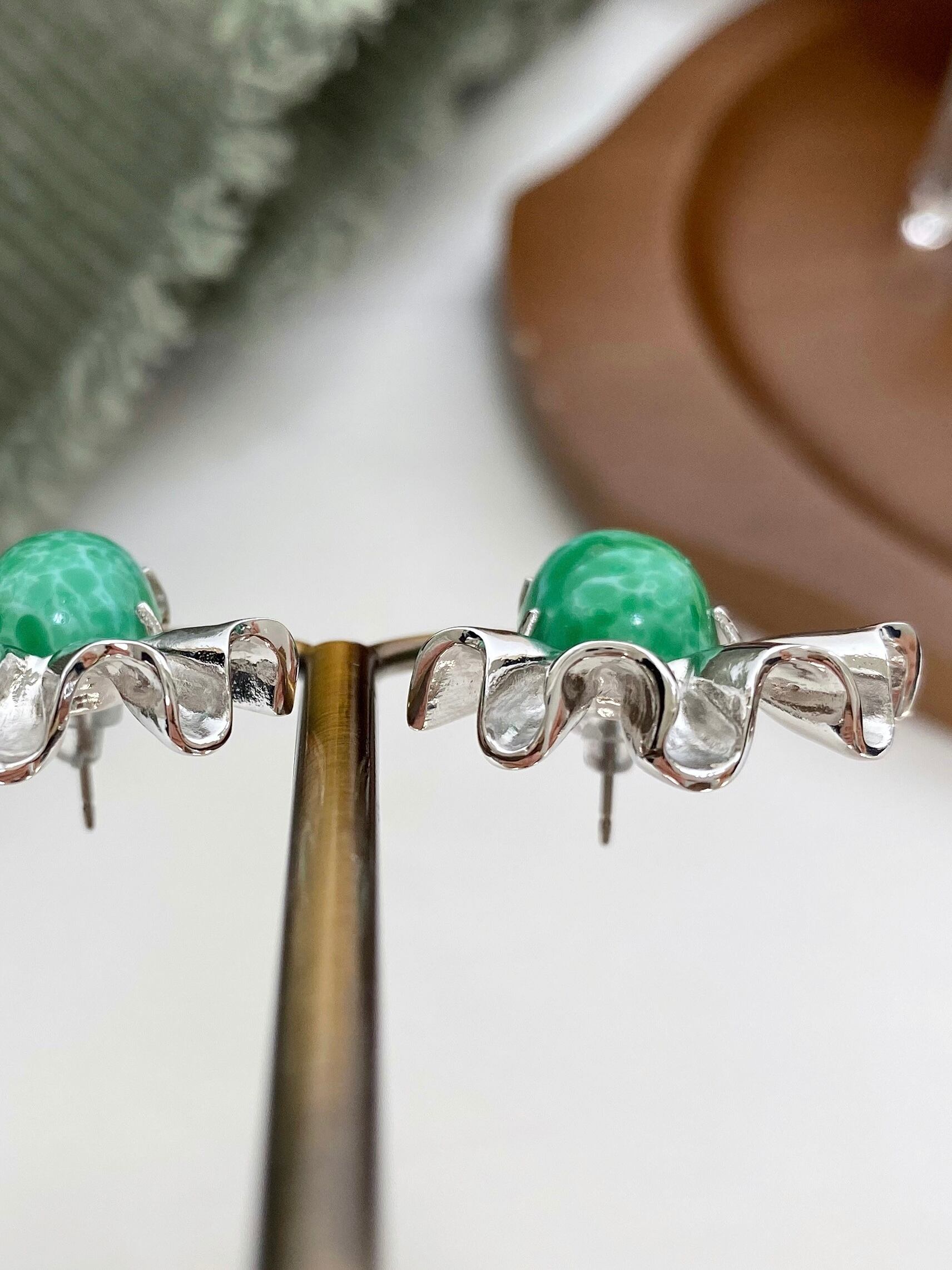 可愛さの中に重厚感や気品のある、フリルモチーフのピアスです。