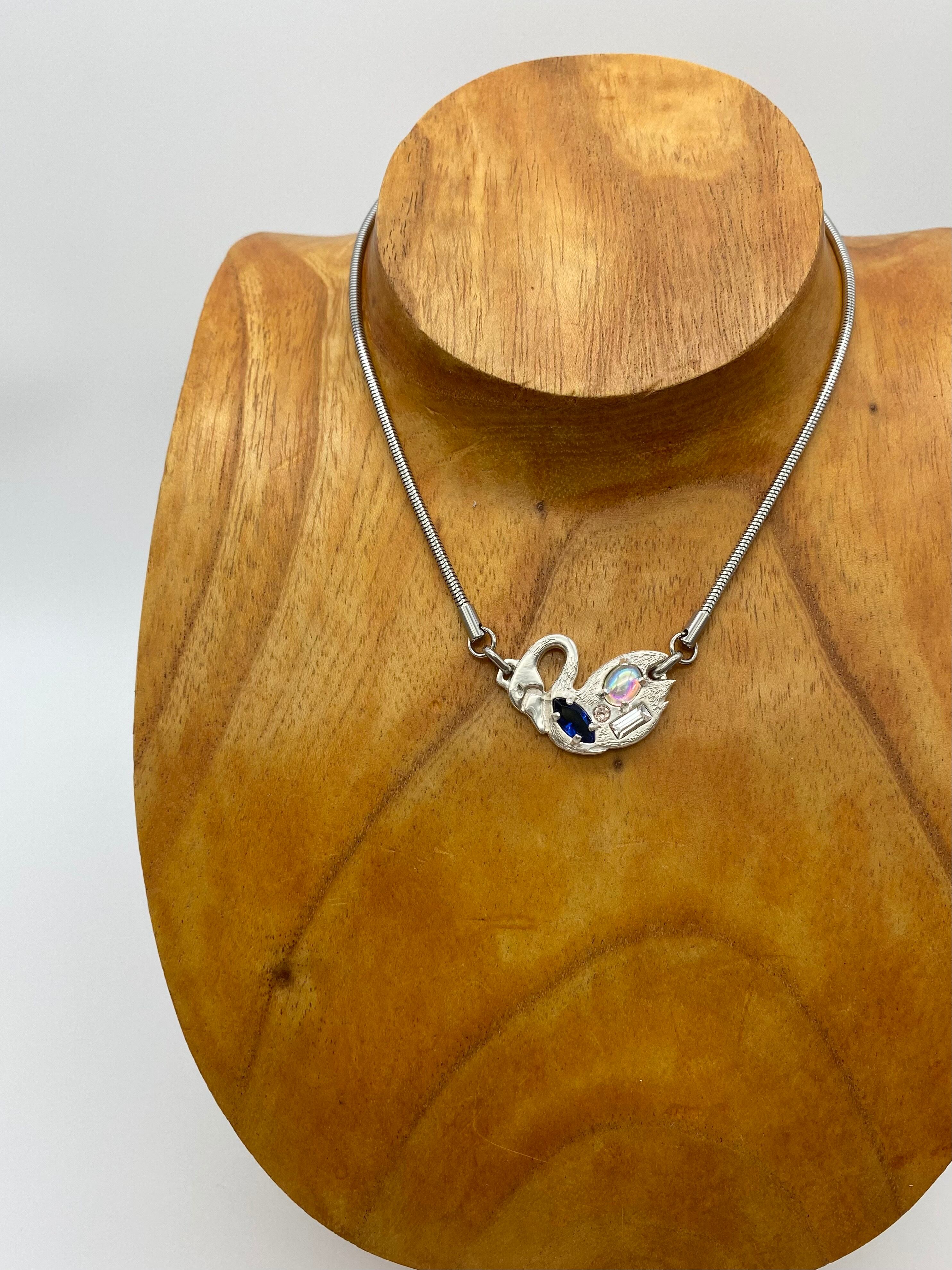Lara necklace | swan | midnight blue