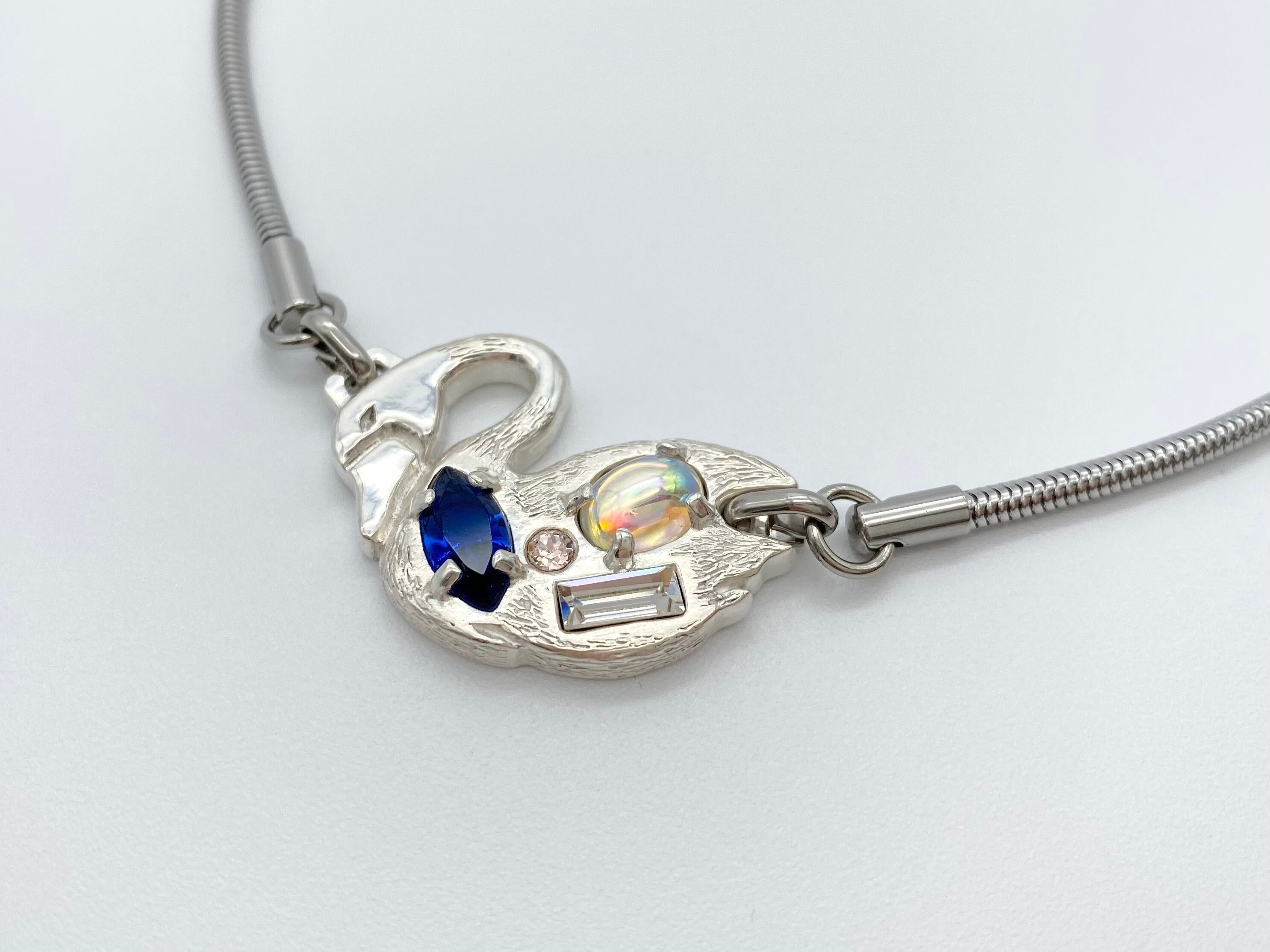ゆったりと首をもたげた身体にキラキラが散りばめられた、スワンモチーフのネックレスです。
