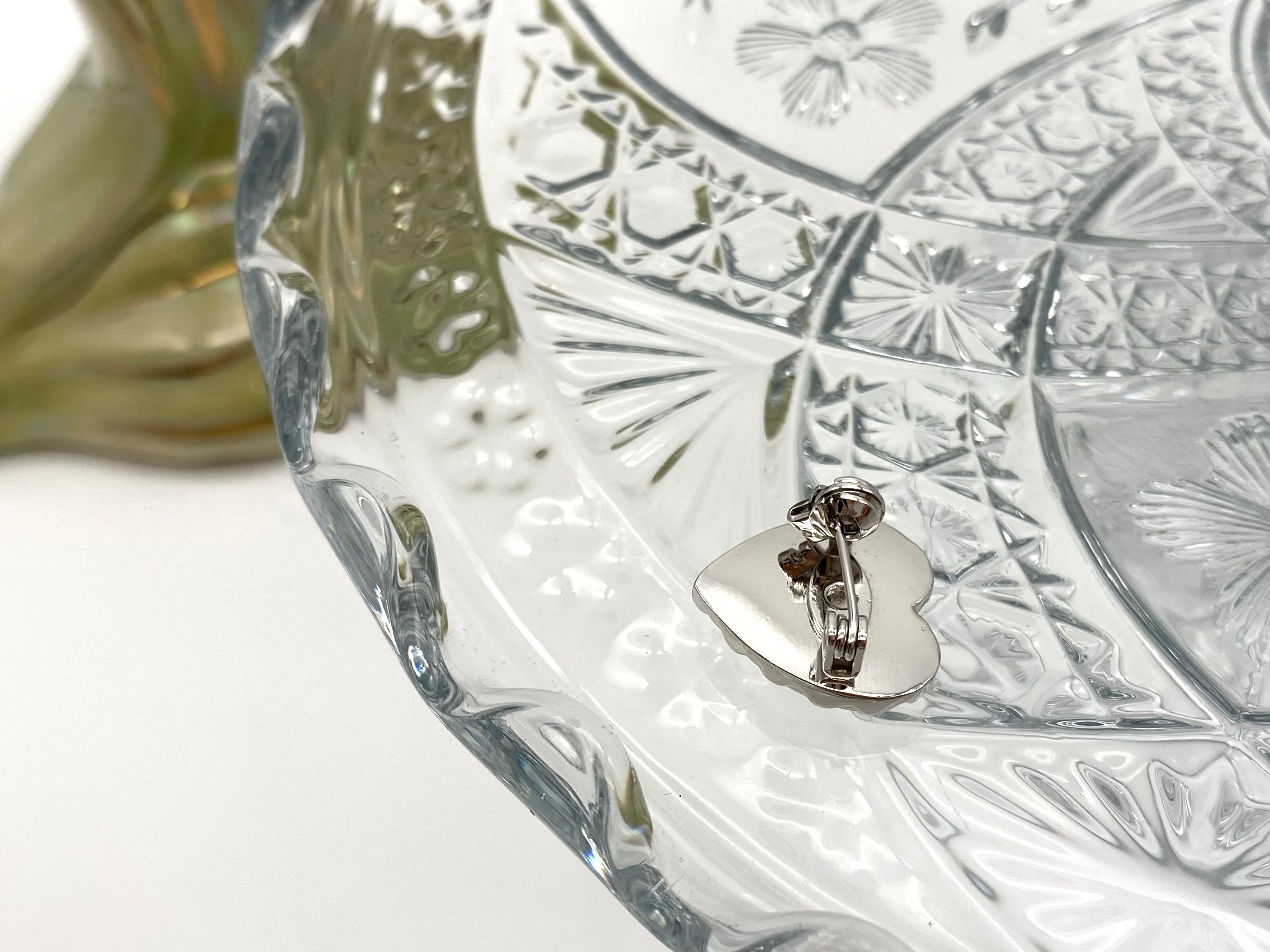 フリルで囲んだハートの真ん中には、角度によっては虹色のような輝きをするライムグリーンのスワロフスキーを。