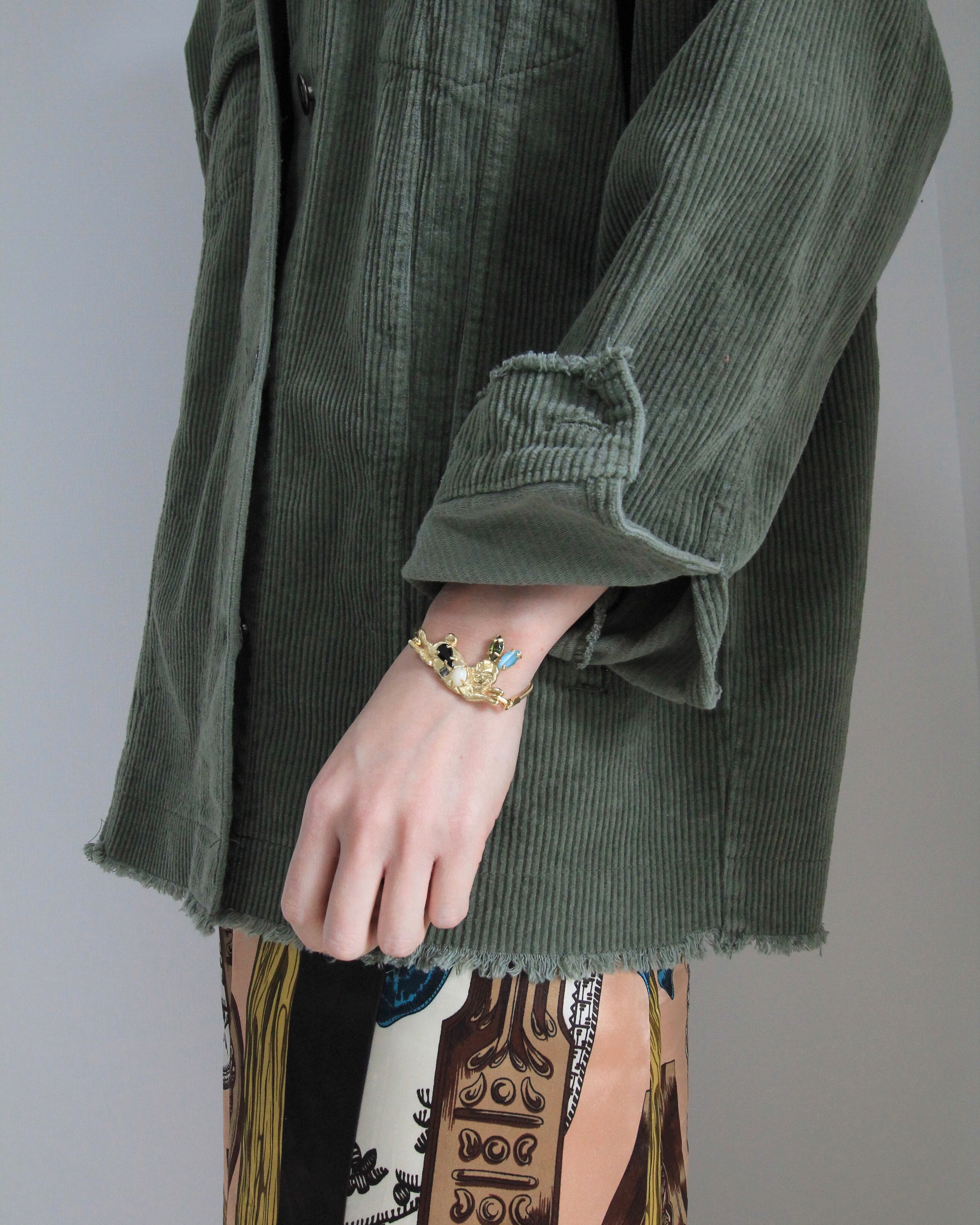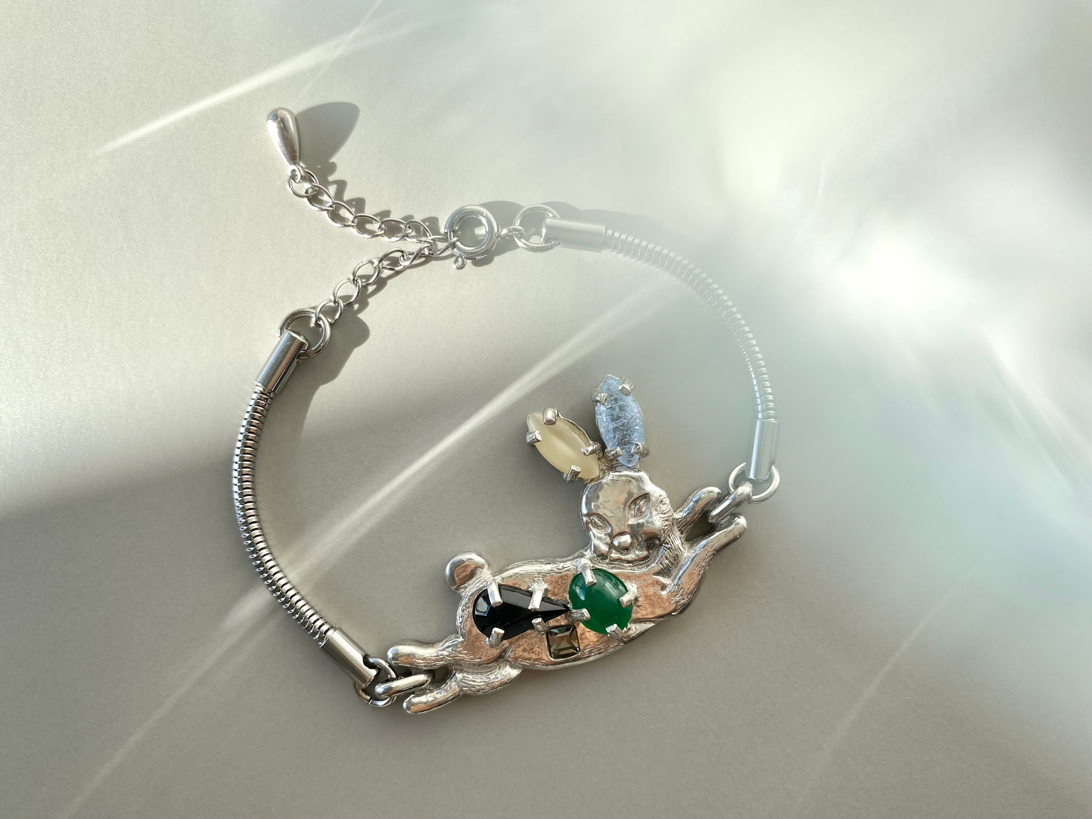 ○お手入れについて:使い込むことで表情が変わる、そうした経年変化をお楽しみいただけるよう、風合いを残した仕上げにしております。市販のクロスで磨いたり、お好みでお手入れをしてお楽しみください。その際、ストーンやスワロには、研磨剤入りのクロス や シルバー洗浄液 の直接のご使用は避けてください(質感変異の原因になります)。永くご愛用頂けますよう、ご使用後はジッパー付きの小袋などで空気を抜いて保管することをおすすめしています。